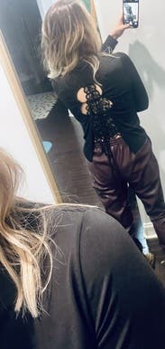 I worry sometimes if certain tops or items are "too young" for me to wear. This top is business in the front, party in the back - tasteful but a little spicy. I ended up purchasing it and so glad I did!