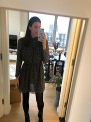 Perfect dress for fall. I wore a few times, mainly with different boot options. Always looked great. Flattering dress. I'm on the heavier of my weight right now and I felt comfortable