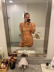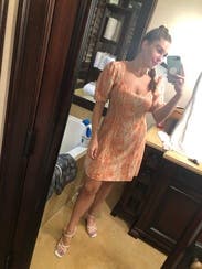 This dress was great!! Loved the back of it and the orange was pretty. Also it wasn’t too short for a tall gal, which was so nice!