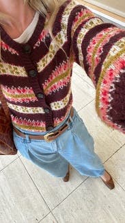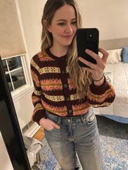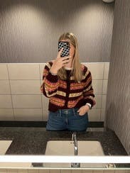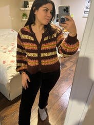 This was so cute as a front tuck with some cropped, straight leg jeans and brown leather shoes. Definitely able to pull off the cardigan as a shirt look with this. Perfect fall colors. Would rent again.