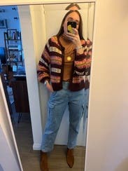 This sweater is such an easy way to elevate a simple outfit. I wore it tucked in to jeans and buttoned up. Got tons of compliments! Also, I usually get super hot in sweaters but this was was perfect.
