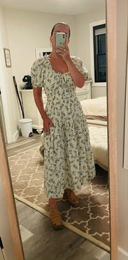 Fit / Tip: I felt kind of lost in it (I'm 5'2, small chest, wide hips) but you can tell it's a prairie dress and on the flowy side. BUT, I had so many compliments on it and I felt very feminine in it. Review: honestly this would be so sweet on a prego belly !!