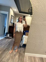 This top and the shoulder detail is really beautiful. It deserves its own moment with simple jeans or denim shorts. I think the skirt actually took away. Will rent again! First TTS.