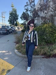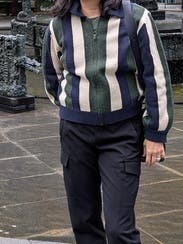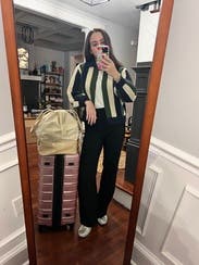 I’m sending this one back without wearing it because, honestly, what was I thinking renting this in the middle of September in Texas? I’ll definitely rent it again once the weather cools down, though. It’s not itchy at all, and the balloon sleeves give it such a cute, feminine vibe. The collar has this cool-girl feel that makes a statement without going full retro. Obviously, I wouldn’t pair it with tennis clothes, but next time, I’ll wear it with some flowy, oversized trousers or relaxed denim. It’s perfect if you’re actually getting Fall weather—not too heavy, just the right weight.