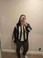 I was seriously obsessed with this cardigan—my fiancé even begged me to keep it. Unfortunately, I already have way too many green pieces in my closet. The fit was great overall, though I did feel like the sleeves ran a little short.