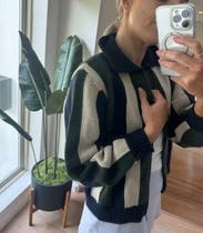 The bold, vertical stripes create a statement look perfect for layering. Whether dressing up or down, this cardigan is ideal for adding a touch of effortless style to any outfit.