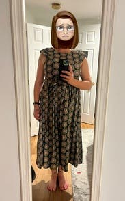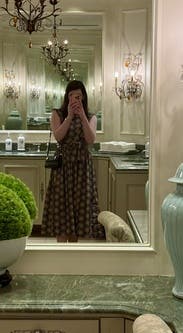This was such a fun dress. I wore for Easter brunch and my son's graduation. It's a memorable print so a great dress to rent not own! The only fit issue is that the arm holes are quite large so you have to find a very slim profile bra. Other than that, was perfect!