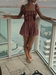 The romper was super cute and comfy but the straps were a little big and it was a little cheeky at the bottom but super cute.
