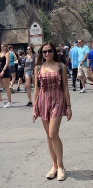 I have worn a romper about three times in my life because, being so tall, it is hard to find a romper that doesn't make you look like a ginormous baby. This one not only fits perfectly but is also very flattering! I wore this for a very very hot day of sightseeing in Rome and I could not have been happier with my choice. Despite being silk, the romper is nice a breezy so I was able to stay as cool as possible while looking super cute!