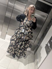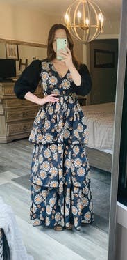 I wanted to love this dress but it just wasn't flattering and I didn't end up wearing it. The combination of my height and bigger bust caused the waist seam to hit too high (just under the bust rather than at my waist) making my proportions look weird. The fabric is also on the heavier/thicker side and doesn't flow so the tiered skirt looks fuller than in the pictures.