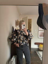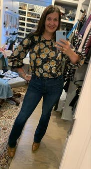 The top is well made but something about the pattern and how it fit was sort of meh. The fabric is too thick to tuck and it hits at sort of a weird spot. I wore black jeans for a casual dinner and wore on zoom for work, so the length didn’t matter. Won’t be in any upcoming shipments for me but wasn’t a total dud.