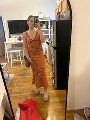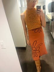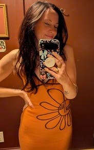 Love this dress so much! The fabric is thick so it’s forgiving on curves but still clings to you avoiding bunching or an ill fit. I got so many compliments, of course, look at how fun and unique the design is. I want to buy but want to try a size down first. Rent it!