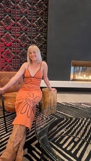 She is GORGEOUS!! Surprisingly versatile, you can dress this piece up or down. Beach, mountain, or city. I wore her a few different places and always got compliments. The material is thick in a good way. You can tell it’s well made but wasn’t stifling on hot days.