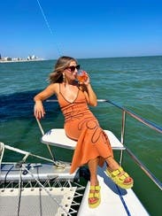The Wolf Gang’s Soleil knit midi dress shines in a fitted silhouette with tonal stripes—ideal for staying cool in the sun. Team it with block-heel sandals and a floppy straw hat for a fresh, attention-grabbing summer statement.
