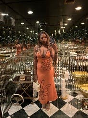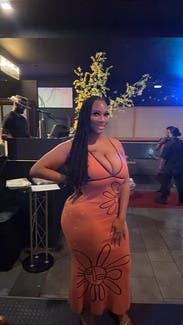 I fell in love with the color of this dress. The dress was beautiful and comfortable. Very form fitting, it showed every curved. I’m losing weight so I’m between sizes now. This dress is a size Small.