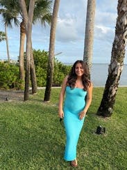 Wore this dress on vacation it Puerto Rico and it’s such a perfect tropical vibe! The fabric is on the thicker side so beware if you’re going somewhere super hot. Wish I got a size small so it was tighter at the top and less flare on the bottom.