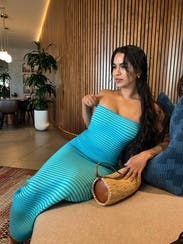 The Wolf Gang Sunmor Knit Maxi Dress offers a sleek, form-fitting silhouette with a soft, textured knit. Pair it with sandals or heels for an effortlessly refined look.