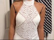 White (68% Viscose, 26% Rayon, 6% Spandex, Lace: 85% Nylon, 15% Spandex). Casual dress. Halter neck. Sleeveless. Side zipper closure. Top to hemline: 58". Imported.