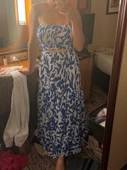 Cute cover up, got plenty of compliments. Though it is strapless so your swim suit’s straps will show. Perfect for a cooler summer day with a breeze.