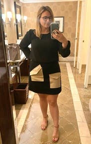 I liked this piece, I paired it with a looser top both times I wore it. Just watch out for the zipper because it would unzip occasionally when I would sit down. It wasn't tight, just had a mind of its own. I like the pocket placement and length. I found it flattering!