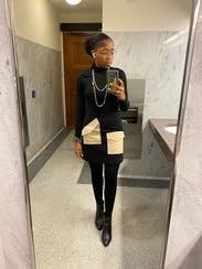 I had so many compliments on this, I love how the back was slightly longer than the front but was still professional. I tend to be in between sizes, and probably could have gone down a size but this still fit well!