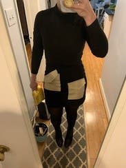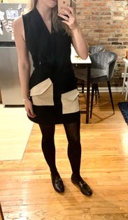 The waist on this is very wide compared to the hips and the zipper would not stay up. Not a flattering cut for me and honestly it was just giving boring vibes. I tried to solve both the waist and zipper issues with a belt which sort of worked.