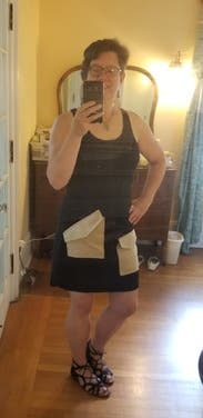 The design is cute but the silhouette doesn't look as a-line as I hoped with my wide hips. Still it looks good and it's very comfy due to the light stretch of the fabric.