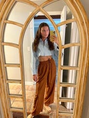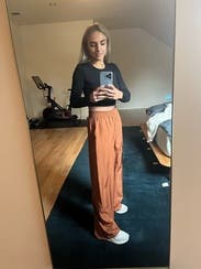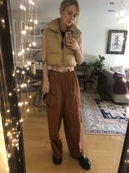 Was so excited to get these and even though they are nothing like I thought they would be, they’re totally giving in all the right ways. These would be ideal Summer pants, despite the color, because they are nylon and super thin. I thought they would be rigid brown pants but they feel more like a tent? Best way to describe it. They’re actually long enough on me (praise!) at 5’7. Hard to find that baggy look because usually pants looked cropped on me or ill fitting length-wise because my legs are long. Rent for sure!