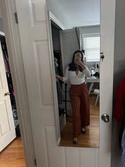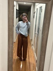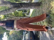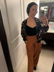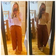 I was worried these pants would be too long, but somehow fit perfectly. Super thin material made them extremely comfortable to wear all day long. Very flattering color and cut