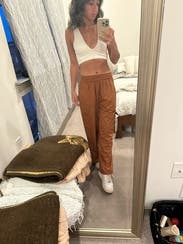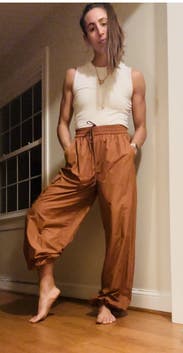 Loved these for everyday going to the farmers market with sneakers or dressed up with block heels and a body suit for dinner with friends. SO comfy and chic. Definitely a little swishy sounding but didn't bother me.