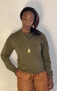 This sweater is fun and unusual! I wore it to a casual dinner party with some wide leg pants and boots. The material is comfortable and lightweight. The color is a bit drab so I jazzed it up with a fun bracelet and statement ring. The semi-detached sleeve has a few options: wear as a sleeve with a cut out at arm pit, draped over arm, or like a scarf. I chose the scarf look, but wore as a sleeve when outside in the cold. Overall a fun top that had some compliments. Will rent again!