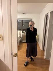 I loved this skirt more than I expected! I felt fashionable yet comfortable for a day at work. I paired it with a sweater & booties.