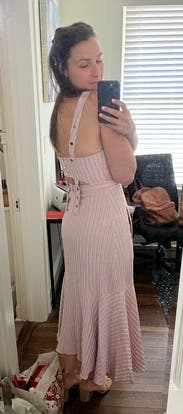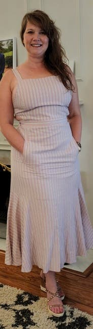 The back of this dress was cool and interesting! I wasn't obsessed with the length; it hit me at an odd length. But the pockets were a bonus!