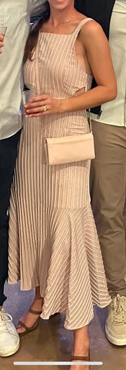 I wasn’t sure about the back of this one, but it was incredible! I think it’s been my most complimented item from RTR. It had a slimming and flattering fit, crisp but comfortable material, and an understated color. I loved and have rented twice now!
