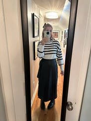 Great skirt for every day. Can be dressed up or down. I liked that you could tie it and adjust the waist fit. I would rent again.