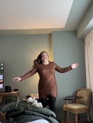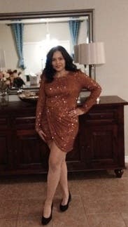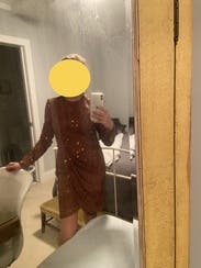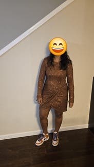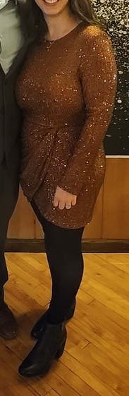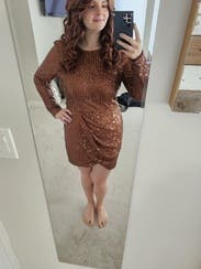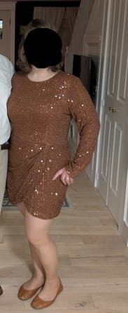 This dress was perfect for New Year, it’s a beautiful brown/gold not too loud but sparkly enough and I would say it fits a little big but I rather have a little room than not. If you want a tighter fit size down. I enjoyed it wearing it very much.