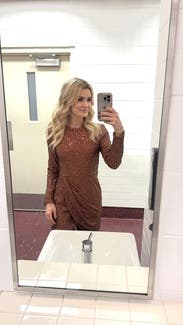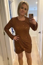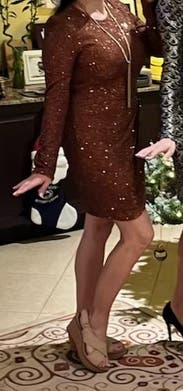 Wore this dress on a girls trip to Vegas for a Supper Club! This dress was a perfect glitzy bronze mini dream. True to reviews, this dress runs LARGE. I usually wear a 4 and opted for the 0 in this dress. Ordered both the 2 and 0 and decided for the smaller fit of the 0 for the Vegas glam vibe. In the end, I highly recommend to get this dress.