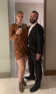 I rented this dress for my friend and as you can see, she was stunning. She wore a size 6. It’s form fitting with give and grace and absolutely gorgeous and sparkly. Can’t say enough about this dress. You will feel amazing in it and the compliments came all night!!