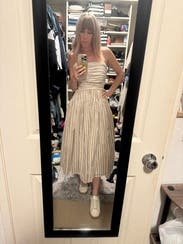 I would have purchase if it wasn't still so expensive. This was a risky try for me, and I loved it! Wore it with a sweater for church/work, but also didn't need for more fun. So flattering and cute!
