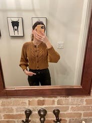 I loved this cropped sweater. It was soft and not itchy! I wore it over a dress to a party and buttoned with pants to work.