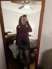 I paired this top with a leather circle skirt and knee-high boots and was very satisfied with the look.