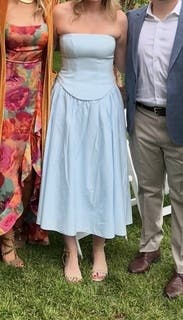 I wore this to a wedding and loved it! The corset-style top was a perfect design, super comfortable, and flattering. It stayed up all night without any issues (no strapless slipping!). The color is stunning, and the dress even has pockets, a bonus. It's a great choice if you have a longer torso. I received tons of compliments and would 100% rent it again.