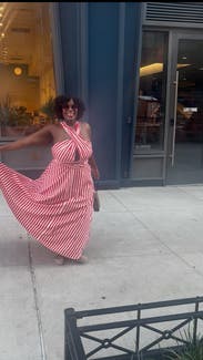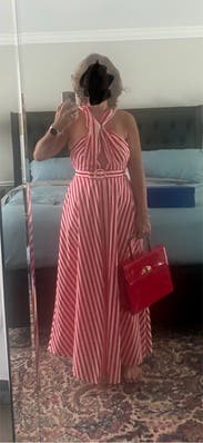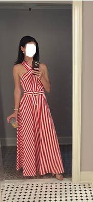 I was channeling the French Riviera for a Kentucky Derby themed dinner event and this dress delivered! Pros: -pockets! - length is super chic -print is great Cons: -back is open, must wear nippies or other boob cups -gaping on the sides is excessive around bust (I had to safety pin both sides because there was too much fabric)