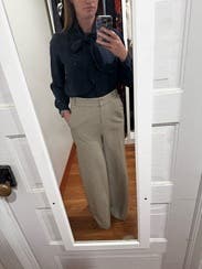 I loved the style of these pants, but the waist was a little tight to be completely comfortable. I wore them with a more casual shirt for work.