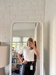 It was in good condition and well made. Elevated version of a white t-shirt, but note that it’s very cropped. I wore it with my highest waisted jeans and then it was suitable for work.