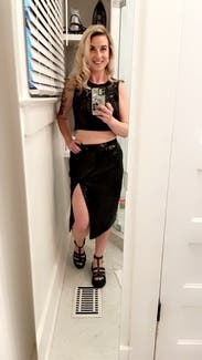 I’d rented this skirt last year but had nowhere to wear it and could wait to rent it again for a trip to Vegas. It fit perfectly, length was great and was so comfy with no scratching. The matching top looked great with it and I got so many compliments!