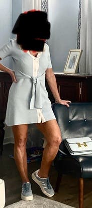I was iffy on this one based on the model pictures, but it fits so well with super comfortable and actually very flattering. One concern was that it would be too thick and add bulk but it really wasn’t. Also love the baby blue. It’s too warm for summer (70+ degrees) but a nice spring item.