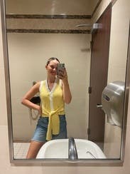 Cute top! Comfortable material. Tie is slightly strange at first, but it worked out