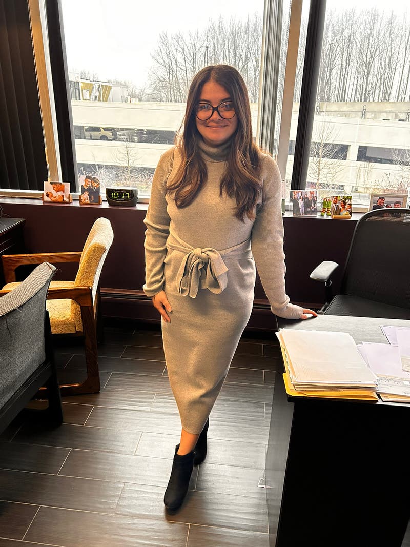Use the gorgeous silhouette of this tie-front sweater dress by TOCCIN x RTR to showcase your most fabulous accessories. Style with snake skin boots and bold jewelry to take your look to the next level.