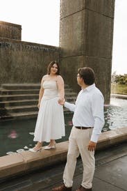 I got engaged in this dress and it did not disappoint!! It fit so well and I didn’t have to pull it up at all despite being strapless.
